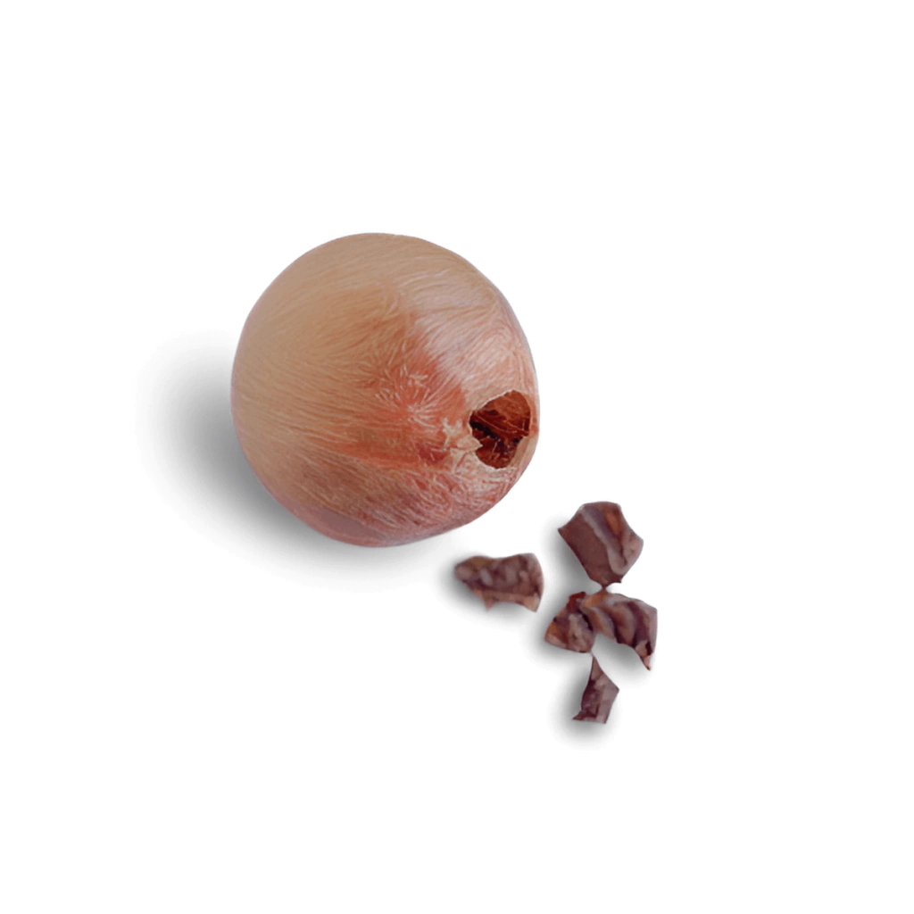 Essa belezinha nada mais é que bexiga bovina recheada com pulmão de boi, sua finalidade é proporcionar enriquecimento ambiental interativo, estimulando os instintos de caça do cachorro: primeiro ele vai tentar tirar os petiscos de dentro da bolinha e depois ele pode comer ela por inteira!