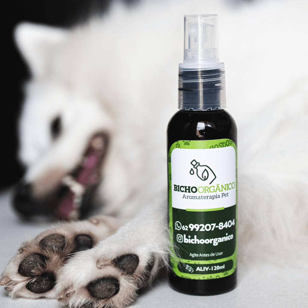 Abra os pelos com as maos ou uma escova/pente, aplique o spray diretamente na pele e massageie para espalhar. Evite a area dos olhos, boca e focinho. Se precisar aplicar no rosto do pet, use gaze ou algodao, nunca borrife diretamente no rosto.